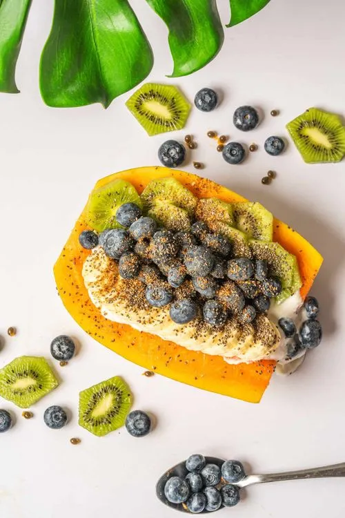 Bananas, Mango, strawberries, honey, coconut.
