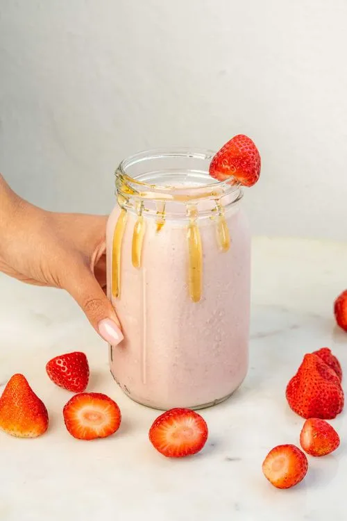 Almond milk, strawberries, honey.